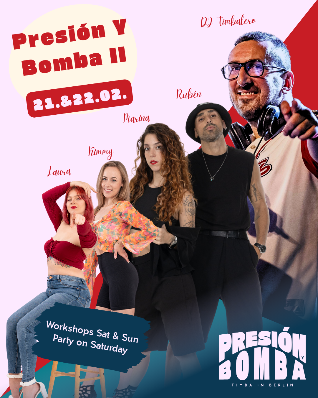 Over 6 hours of workshops with Rubén and Marina from Barcelona (Solo & Partnerwork). A big Presión y Bomba Party on Saturday with DJ Timbalero from Strasbourg.